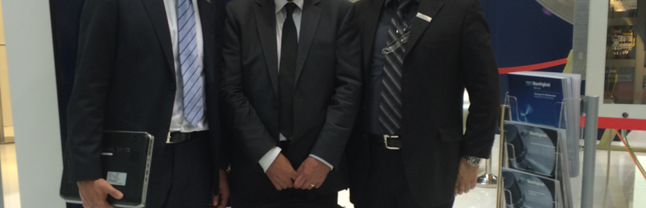 Bonfiglioli’s Marco Bonivento (Regional Sales Manager Distribution) and Carlo Rondelli (Group Sales Manager Bologna Head Office) flank All Torque’s Craig Mighell