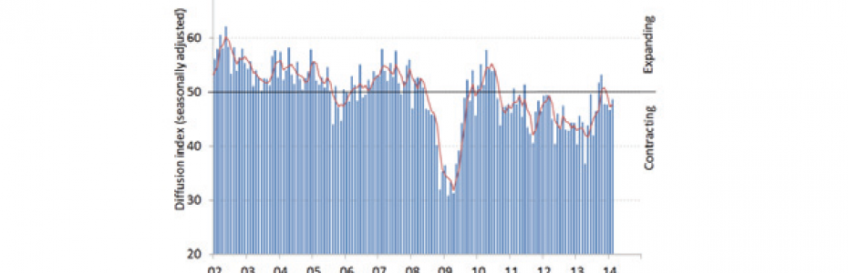 February 2014 Performance of Manufacturing Index results have been posted by PriceWaterhouseCoopers / Australian Industry Group, with Australia recording a contractionary 48.6.