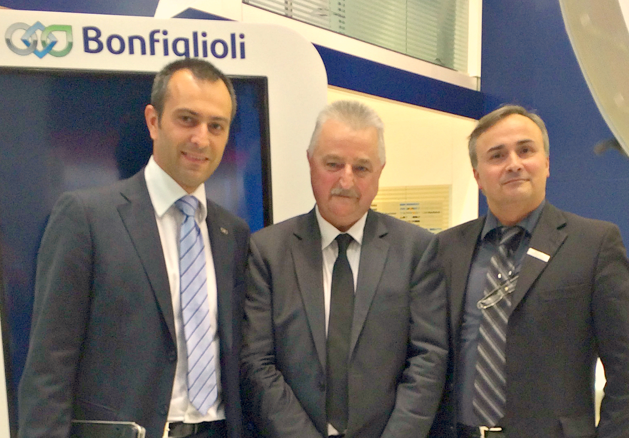 Bonfiglioli’s Marco Bonivento (Regional Sales Manager Distribution) and Carlo Rondelli (Group Sales Manager Bologna Head Office) flank All Torque’s Craig Mighell